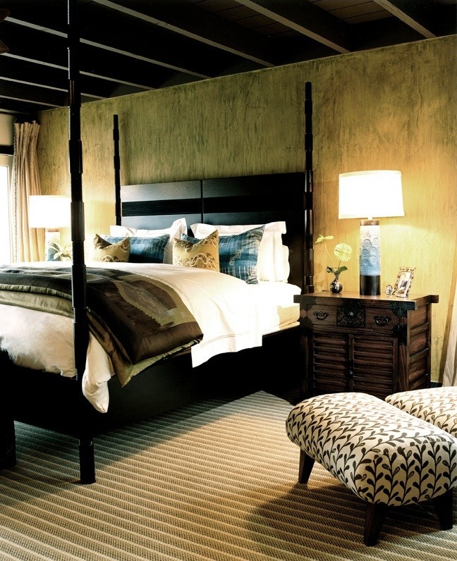 Dark Four Poster Bed Bedroom Eclectic with four poster bed